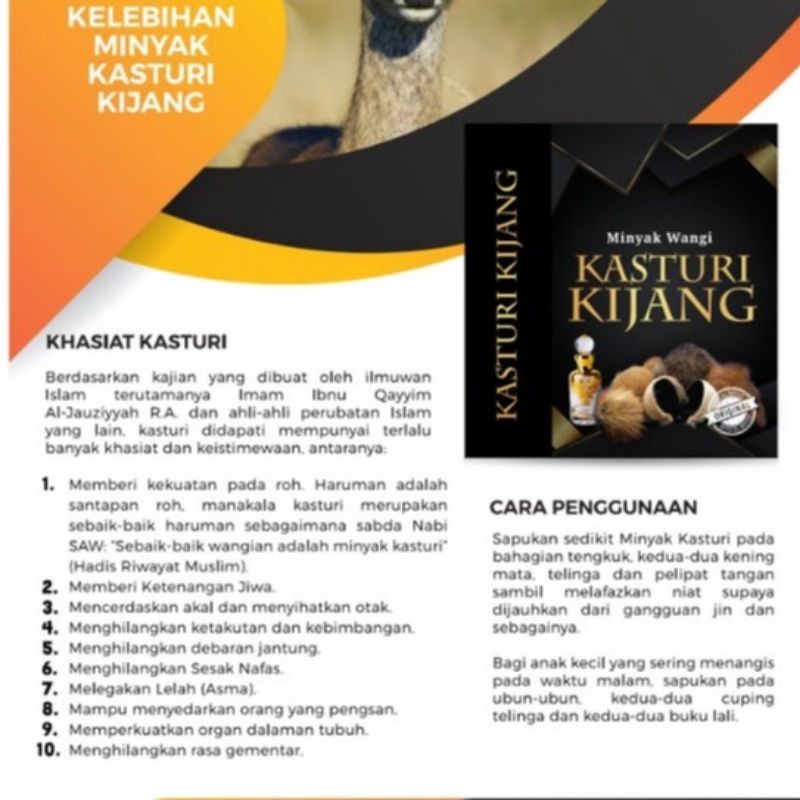 Minyak Wangi Kasturi Kijang Sunnah Ori Shopee Malaysia