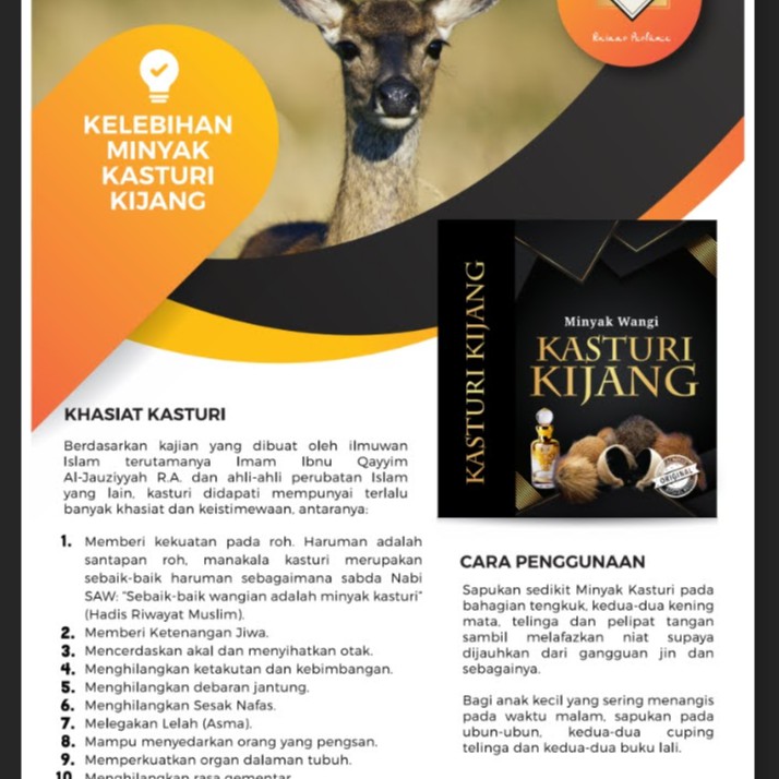 Wangian Kasturi Kijang Asli Syifa Cara Penggunaan Minyak Kasturi Putih Hitam 1 Bagi Yang Kritikal Histeria Dan Dirasuk Gosokkan Pada Kedua Dua Belah Ibu Jari Kaki Gosokkan