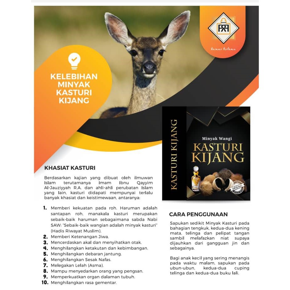 Minyak Wangi Kasturi Kijang Minyak Wangi Kesukaan Baginda Rosul Nabi Besar Muhammad S A W Sebaik Baiknya Wewangian Adalah Minyak Kasturi H R Muslim Lazada Indonesia